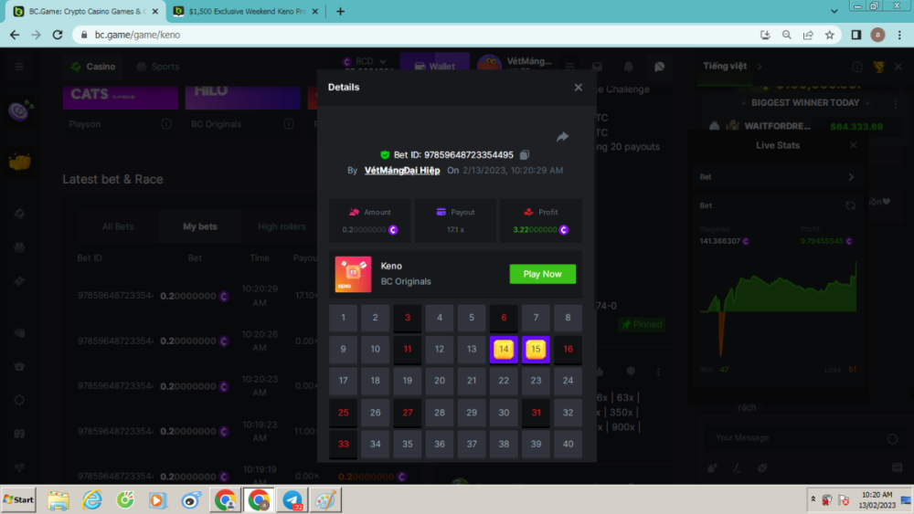 $1,500 Exclusive Weekend Keno Prestige Challenge #68