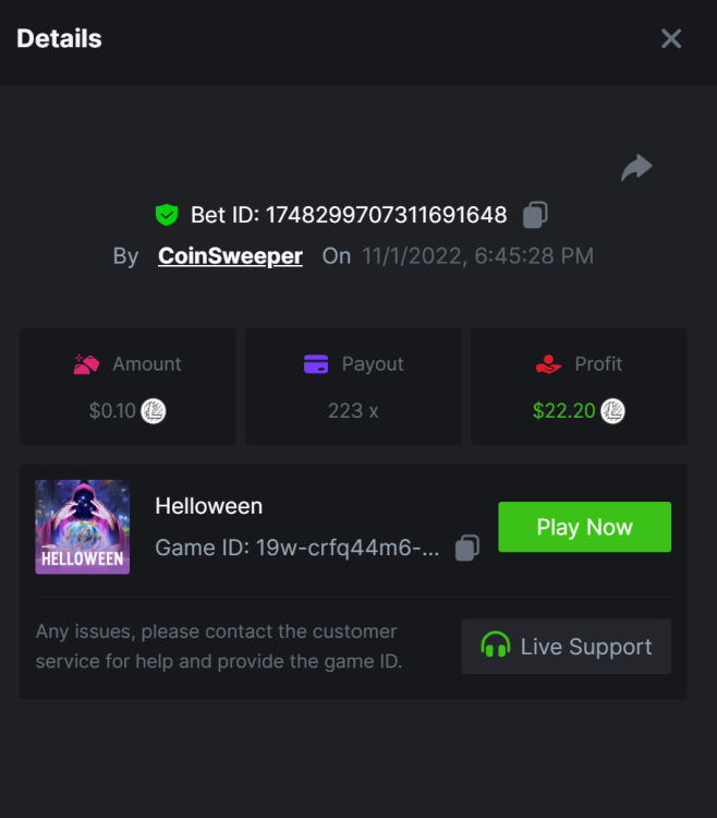 2. Undead Fortune - 644x https://bc.game/#/sd/10W38JEP0QHAMR Tombstone - 1408x https://bc.game/#/sd/10W9S2XO0EG36B Zombie Carnival - 577x https://bc.game/#/sd/10W9TY5RPP9Q8J Fat Drac - 516x https://bc.game/#/sd/10W9WBK9G92G43 Book of pumpkin - 746x https://bc.game/#/sd/10W9XA9KPK1PG3 Helloween - 223x https://bc.game/#/sd/10W9XX1WNUFS43 Mr hallow win - 117.9x https://bc.game/#/sd/10W9YFVLU20FTF Night of living tales : 100.4x https://bc.game/#/sd/10W9YR08U0JTW3 Zombie Circus - 582x https://bc.game/#/sd/10W9ZA08NEFZF7 Lucky halloween - 112x https://bc.game/#/sd/10W9ZY5AB8D91V wolf night - 184x https://bc.game/#/sd/10WA15QHEN8QAB voodoo - 125x https://bc.game/#/sd/10WA1R24DYLPG3 Halloween Jack -46.6x https://bc.game/#/sd/10WA628XAALKWJ