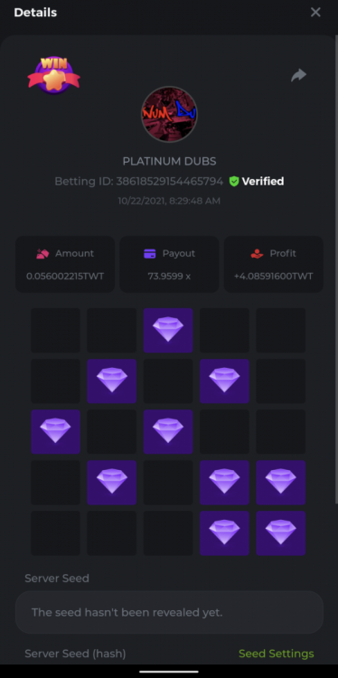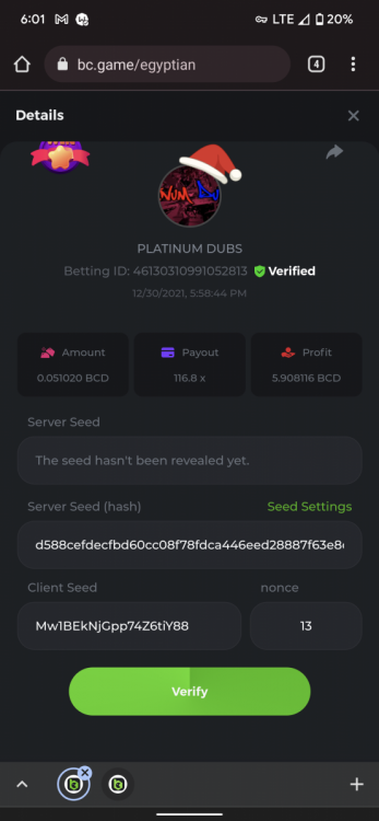 6. Betting ID: 39744648104640636 it would have been alot higher but my phone rotated and I lost 6 free spins they need to fix that shit