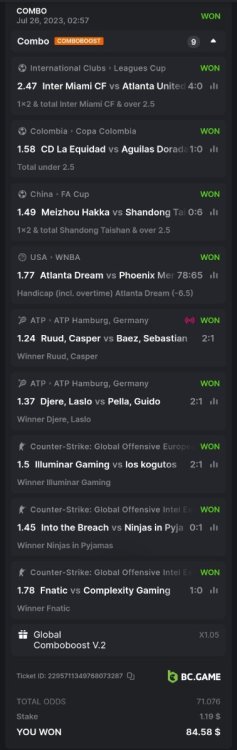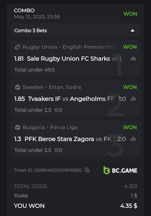1. 1. Bounty odds ×71 Ticket ID: 2295711349768073287 ---------------------------------------------------- 2. Ticket ID: 2296232934522368124