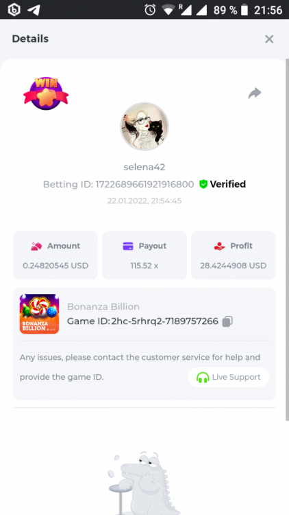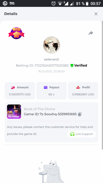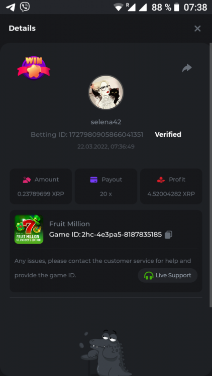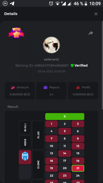 Betting ID: 47900408747661818 х41 Betting ID: 47900408747661819 х1 Betting ID: 47900408747661820 х1 Betting ID: 47900408747661821 х1.5