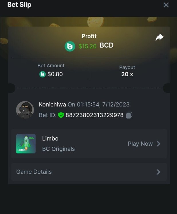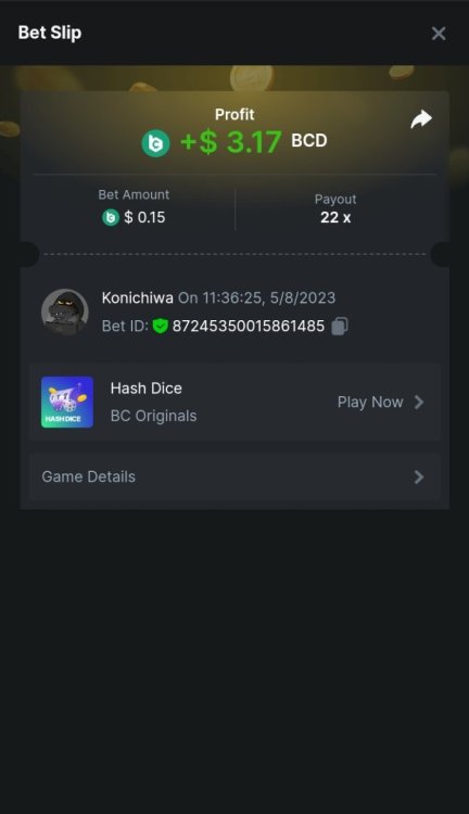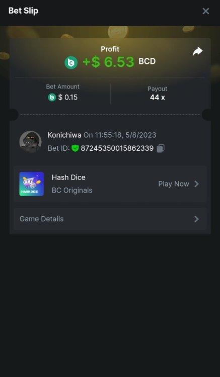 $5,000 Exclusive Classic Dice Prestige Challenge #96Konichiwa replied to BC_Jack's topic in Past Challenges https://bc.game/#/sd/11DP8RD97TL1XV https://bc.game/#/sd/11DP95LO4IHWR7 https://bc.game/#/sd/11DP9K6Z41DMVN https://bc.game/#/sd/11DP9Q2VP5O1LF