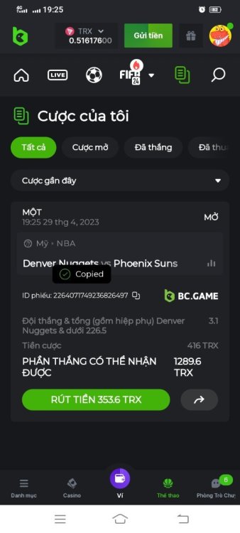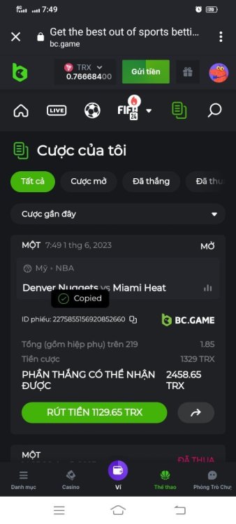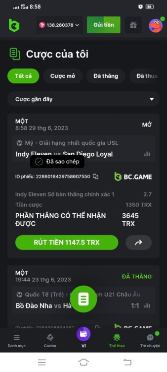 được hoàn trả sport 25 chưa vậy bạn