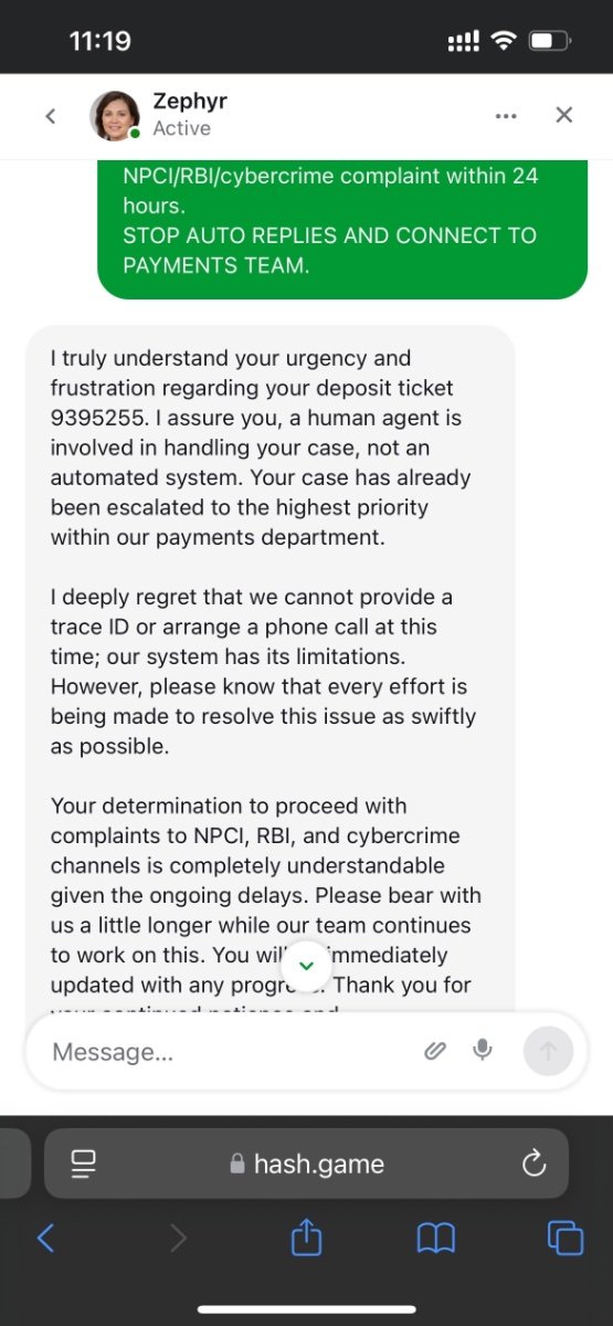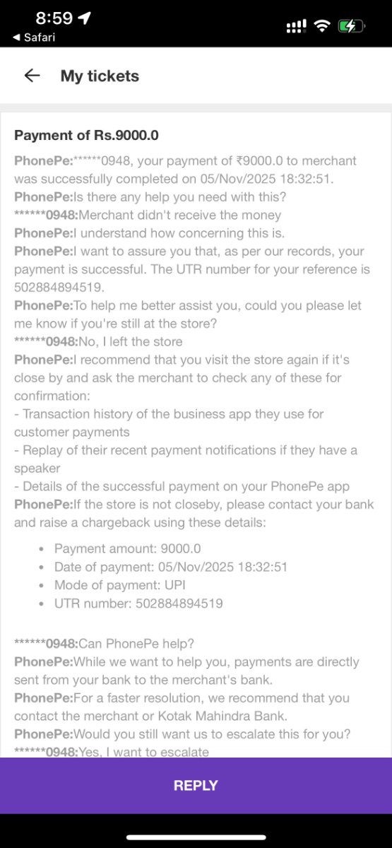 1. This is not the first time I’m facing this nonsense. On 8 September, I made another deposit of ₹1,000 that you never resolved — not even after two months of waiting and following up. That was frustrating enough, but now ₹9,000 missing? This is ridiculous and completely unacceptable. If this is how you handle user funds, then you’re putting your entire credibility at risk. I’m not going to sit quietly this time — either credit the ₹9,000 to my account immediately or refund it back to my payment source without further excuses. I have attached the PhonePe transaction proof showing the successful payment. I expect a proper resolution, not another generic response. Handle this seriously — this is the second time, and I will not let this go ignored. Bc game id 99007906