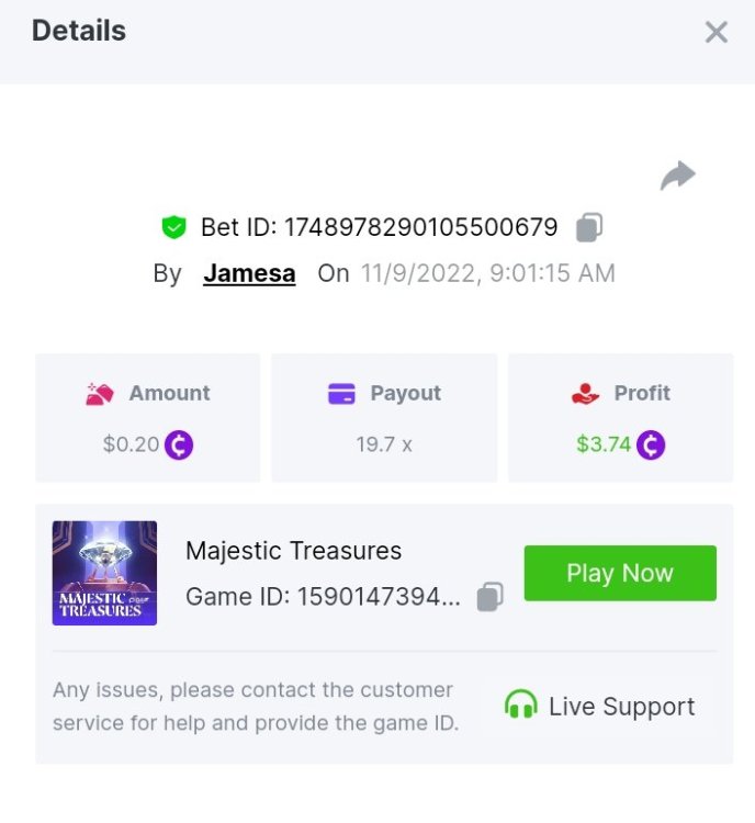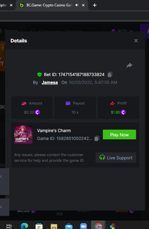 Bet history page for crash not working right now so I wont be able to trace my bet slip but I have a bill of transaction proof. Bet amt=$0.17 BCD Payout=20x