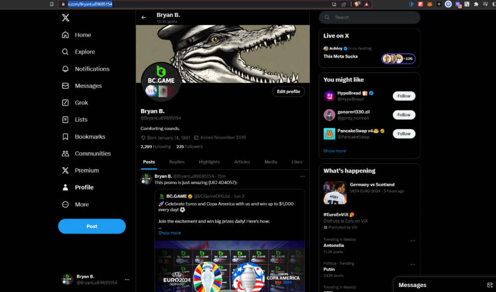 4. https://twitter.com/BryanLu89695154 Bc.game UID 404057