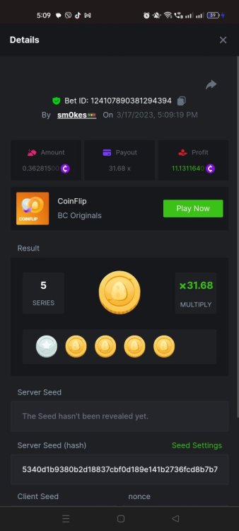 3. BOUNTY : KKK (167.31x) https://bc.game/#/sd/1115PSA473TXJN