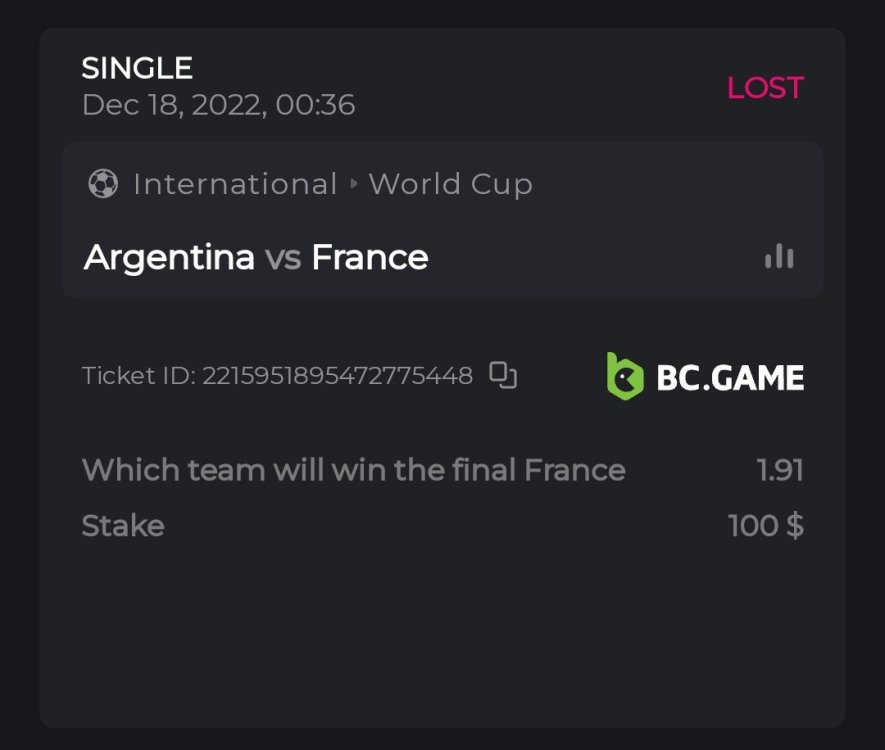 2. Ok I lost Sport Bet ID: 2229397561465250007
