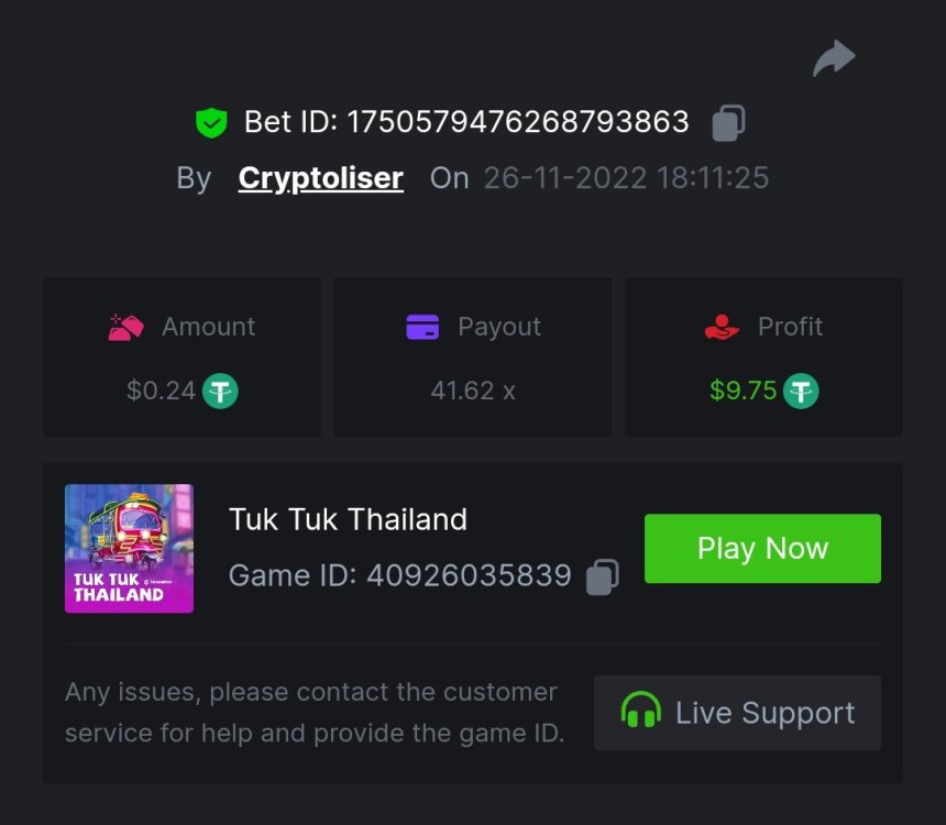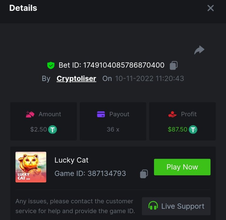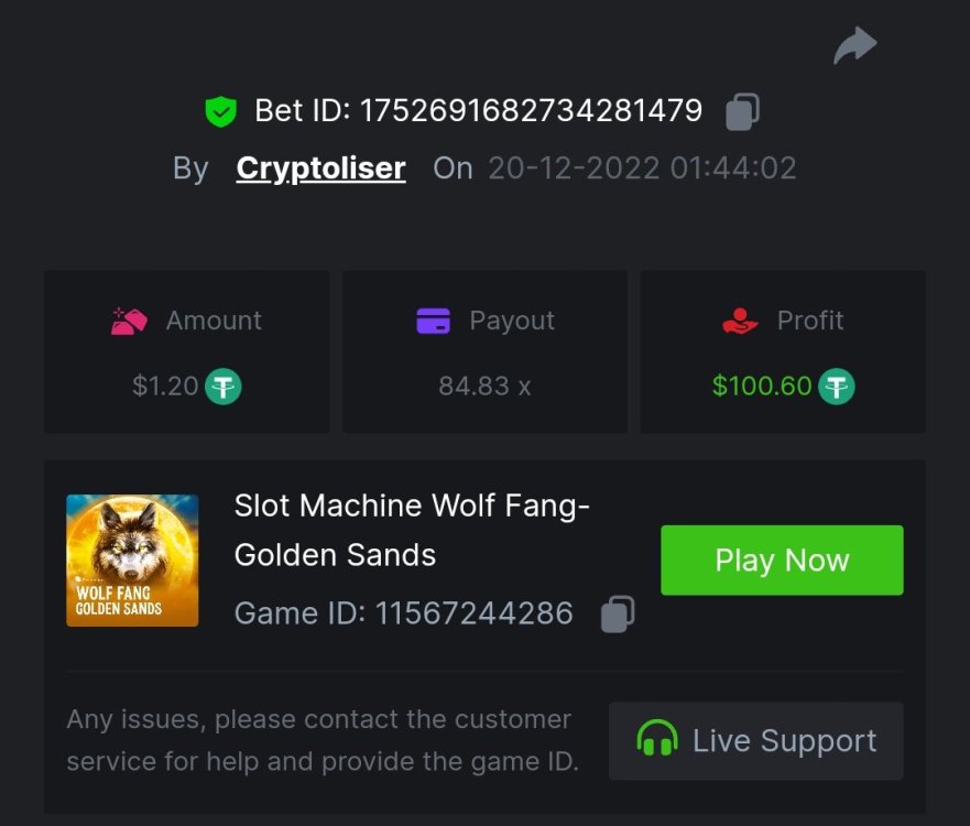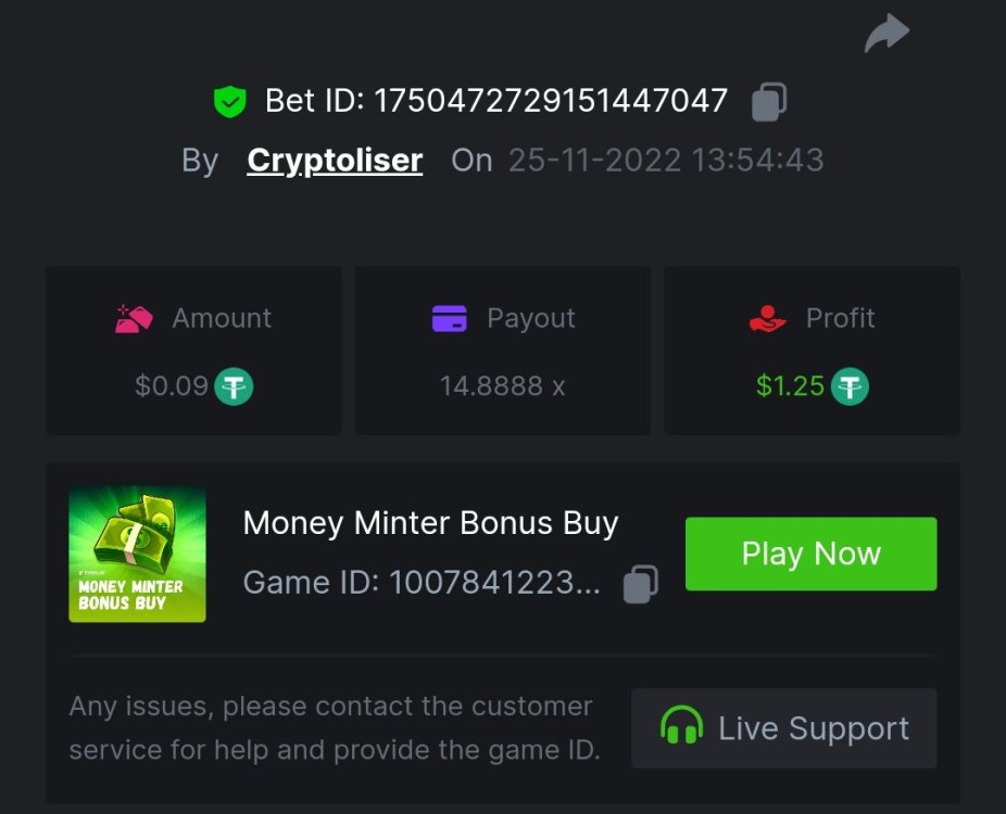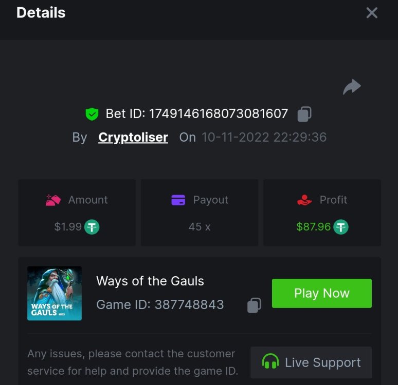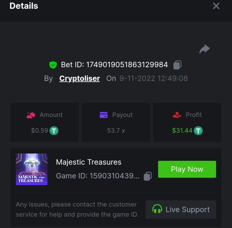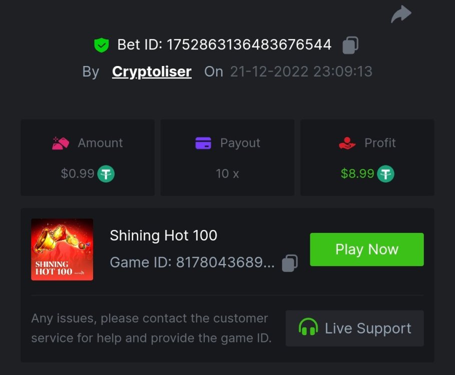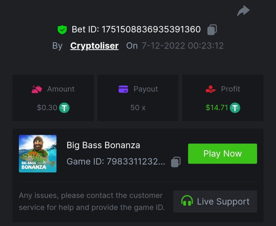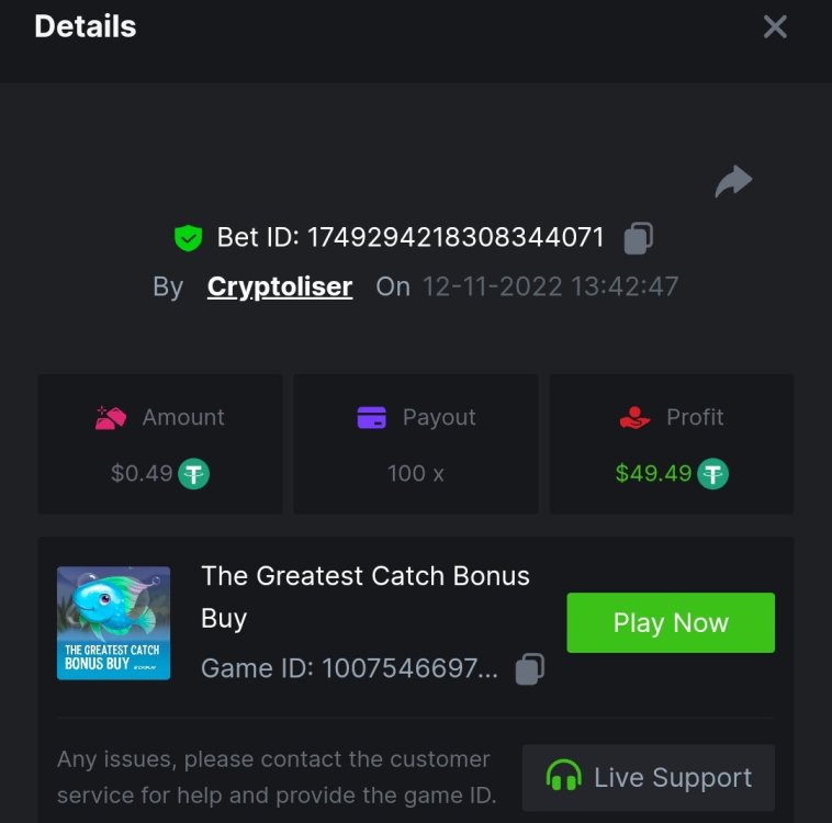 The Greatest Catch Bonus Buy - $0.1 https://bc.game/#/sd/10X157NAXY2LG3 Wild Overlords Bonus Buy - $0.1 https://bc.game/#/sd/10X22QICANQ4UR Gold Of Sirens Bonus Buy - $0.1 https://bc.game/#/sd/10X1Q4RF870T8Z Cycle of Luck - $0.1 https://bc.game/#/sd/10X25JHNBYPWCZ Juicy Gems Bonus Buy - $0.1 https://bc.game/#/sd/10X1LJ9WTDY903 -