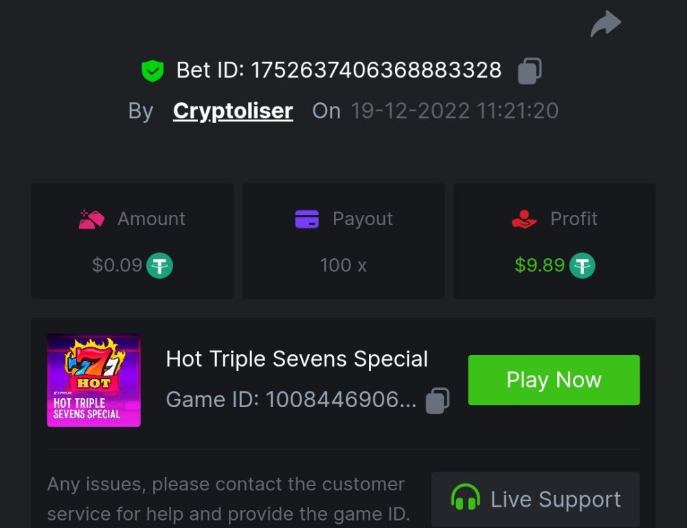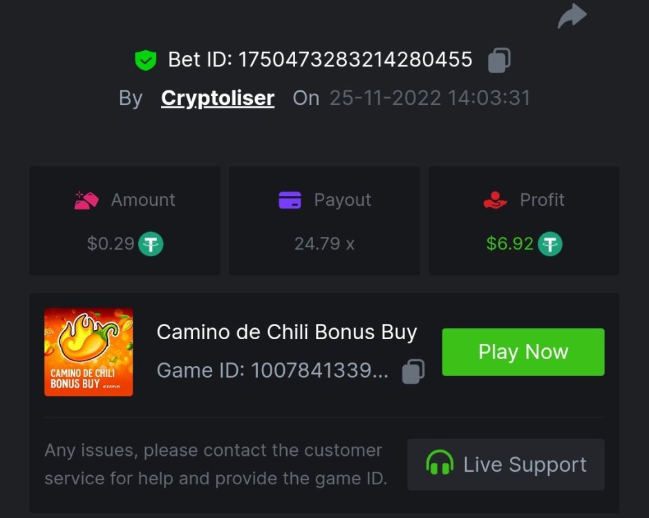 Green chilli - $0.2 https://bc.game/#/sd/10XOCC8WY49QMR Big heist - $0.1 https://bc.game/#/sd/10XPWKTFB31AMR Candy boom - $0.2 https://bc.game/#/sd/10XPULLOJNUEXF Sun of Egypt 3 - $0.25 https://bc.game/#/sd/10XPV5PGDYT5AR -
