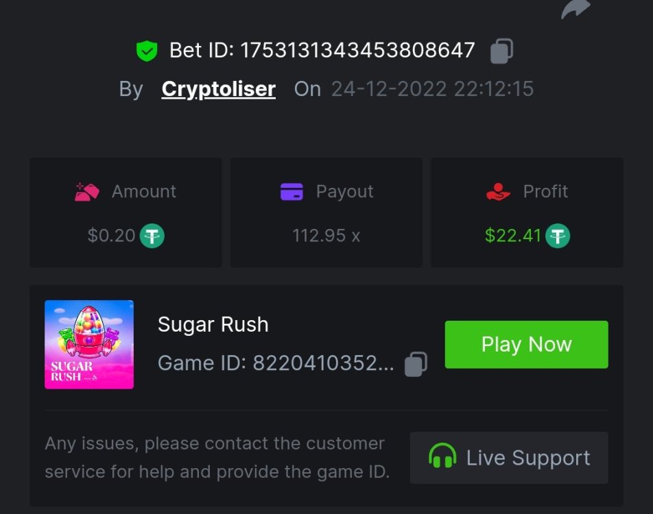 Santa’s Great Gifts - $0.20 https://bc.game/#/sd/1105JVCU8Y7TAR Santa - $0.20 https://bc.game/#/sd/10ZQENX90UPT77 Christmas Big Bass Bonanza - $0.10 https://bc.game/#/sd/10ZQF222U0LJPV Bigger Bass Blizzard - Christmas Catch - $0.12 https://bc.game/#/sd/10ZQF8FUEMUO0J Fury of Odin Megaways - $0.20 https://bc.game/#/sd/10ZYGOSXXWPKB7 Shining Hot 100 - $1.00 https://bc.game/#/sd/10ZQR9TH8ESSUR Gates of Olympus - $0.20 https://bc.game/#/sd/10ZYHYJ7TQTP8Z Sugar Rush - $0.20 https://bc.game/#/sd/10ZY3CNHU9NHN7 Sweet Bonanza XMAS - $0.20 https://bc.game/#/sd/1105J8V50JFN6B The Dog House - $0.20 Starlight Christmas - $0.20 https://bc.game/#/sd/10ZYEKBU6H6WB7 -