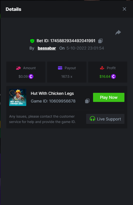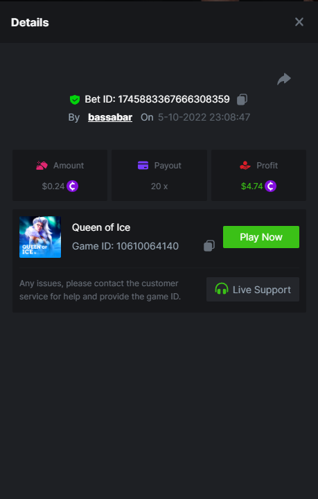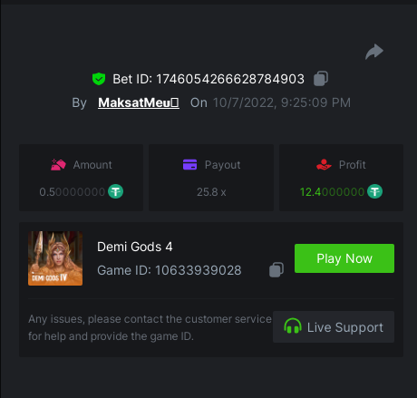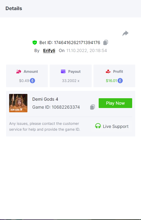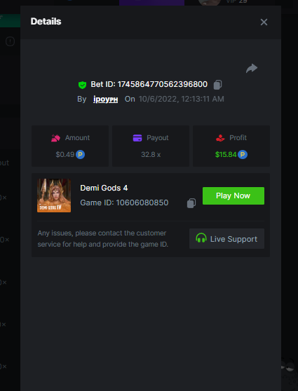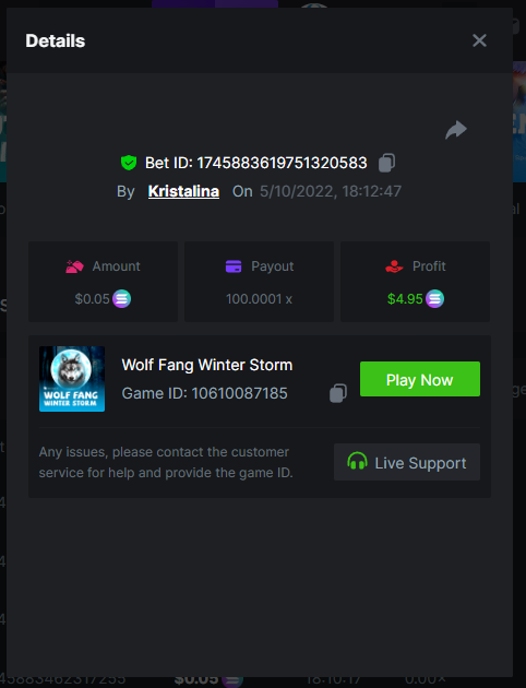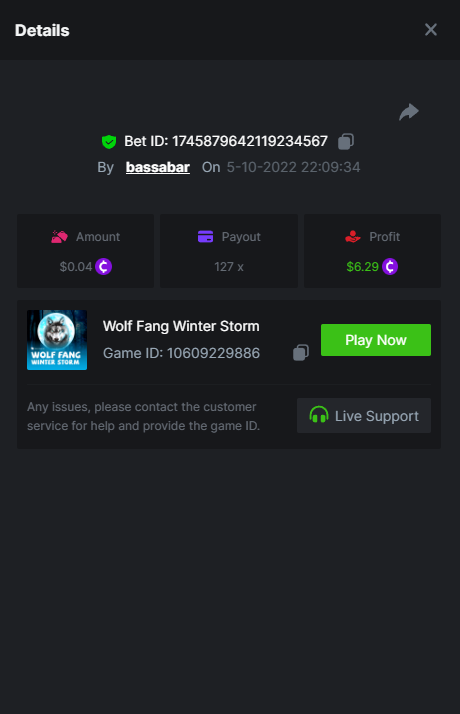 • In the same post, upload a screenshot of your win by clicking the game ID WITH VIEW IN USD mode ENABLED (accessible at the bottom of dropdown menu for your wallet up top, and Submit Reply. Done! This way, we can ensure that your bet indeed met the minimum requirement at the time of placing it: