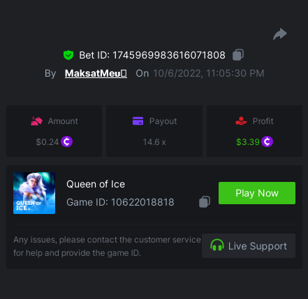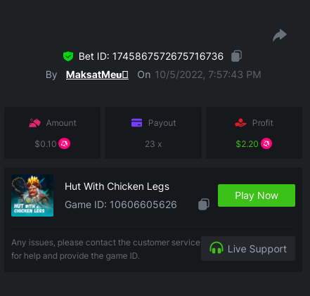 ⭐BOUNTY - Share a bet that shows exactly 50x payout on any of the six games within the timeframe of this event and you will receive a share of 10% of the prize pool! If nobody wins exactly the payout, the player/s closest to the payout will win this bounty! Original rules apply with a minimum bet, minimum payout & VIP.