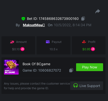 https://bc.game/#/sd/10UG2UYCK614B7 43.0001x $1.80 bet