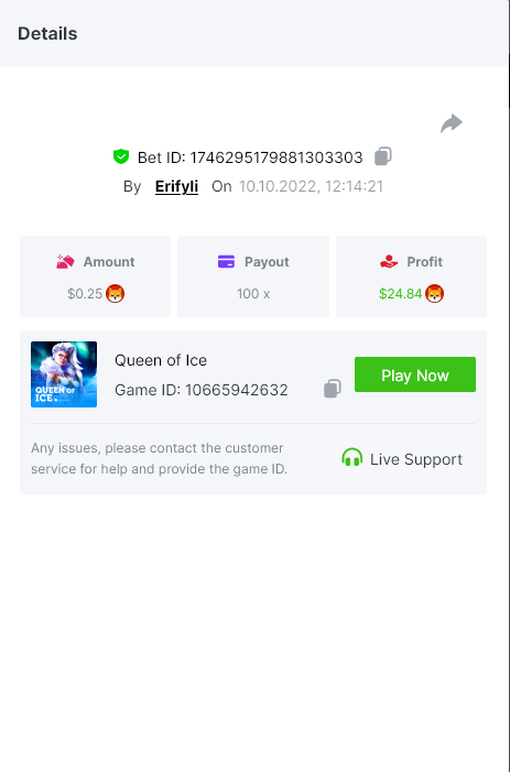 • If the player submits multiple winning entries for the same game, the entry with the highest multiplier will be valid.